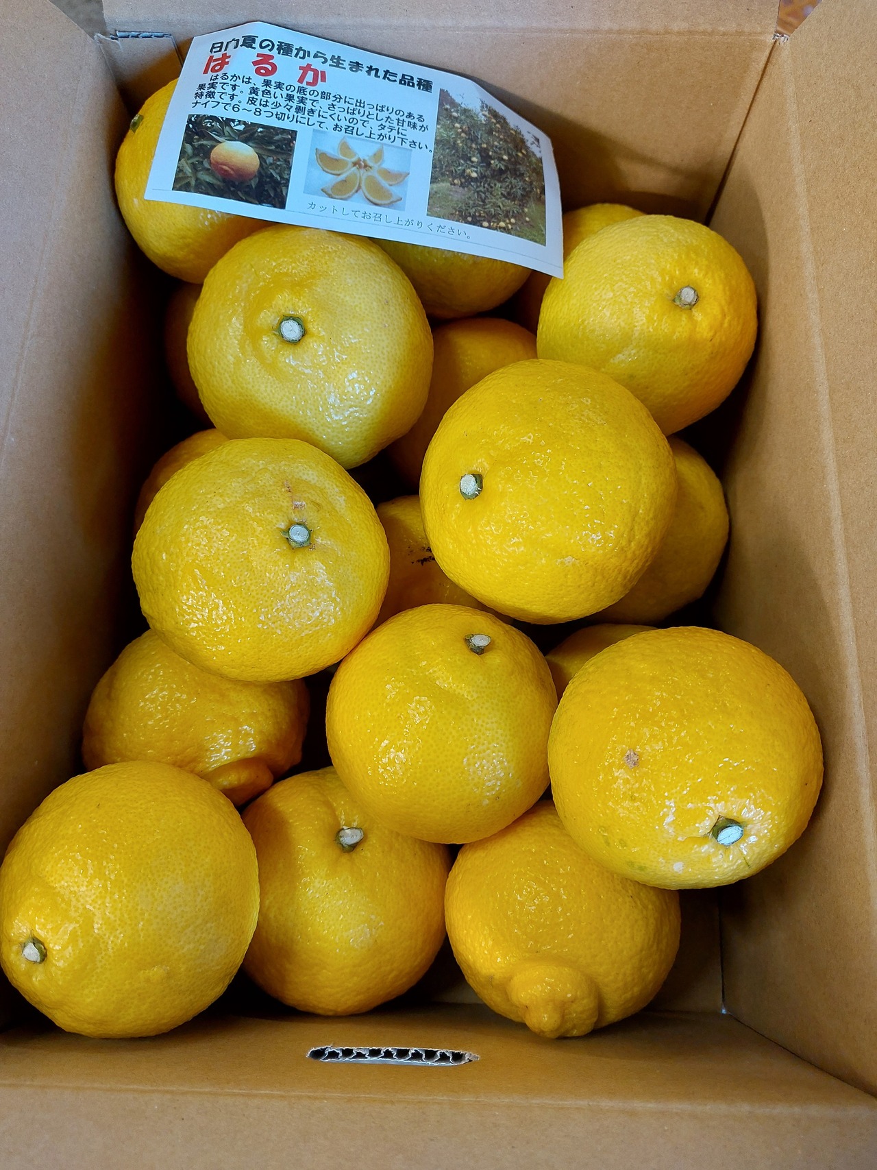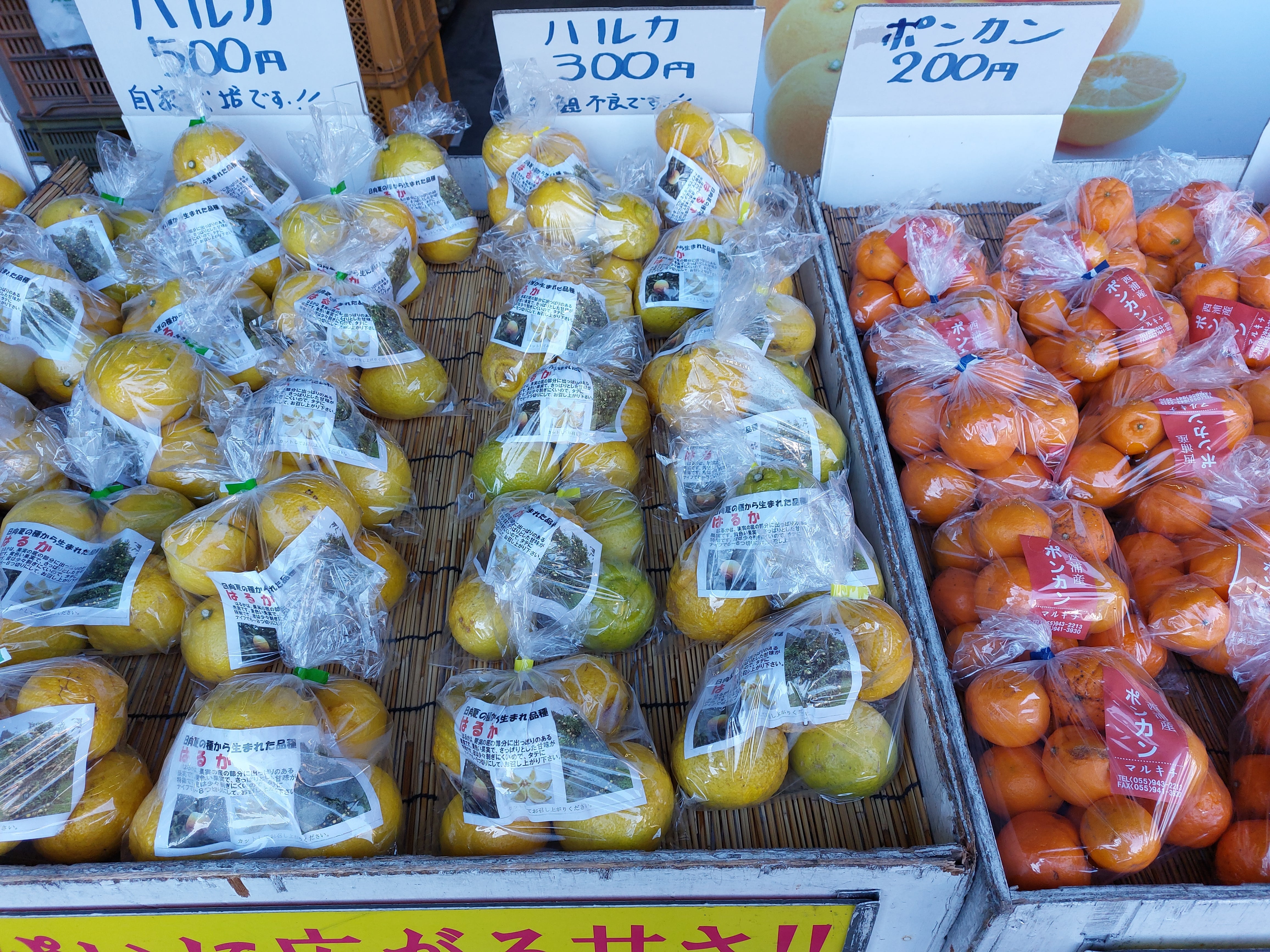 土屋農園の「はるか」です。すっきりとした甘さが特徴です。スマイルカットで簡単に食べられます。内浦の店舗や道の駅でも人気の品種です。大きさは個体差がありますが7~9センチくらいです。